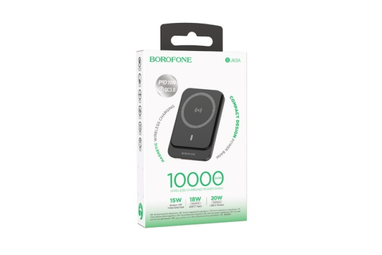 BOROFONE BJ63A NIMBLE WIRELESS POWER BANK (MAGSAFE COMPATIBLE) PD20W 10000MAH BLACK