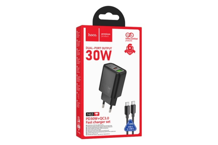 PD fast charging head with 1pc Type-C and 1pc USB A output, 1 meter Type-C/Type-C cable.