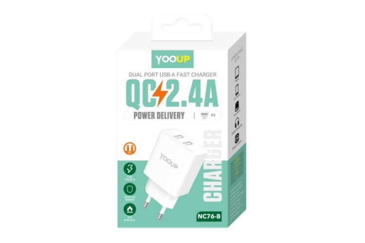 YOOUP NC76-B DOUBLE MAINS CHARGER 12W WHITE